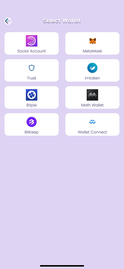 2. Choose the wallet you use, if you don’t have a wallet, you can choose the ‘Social Account’ to register a wallet by your email address or phone number.